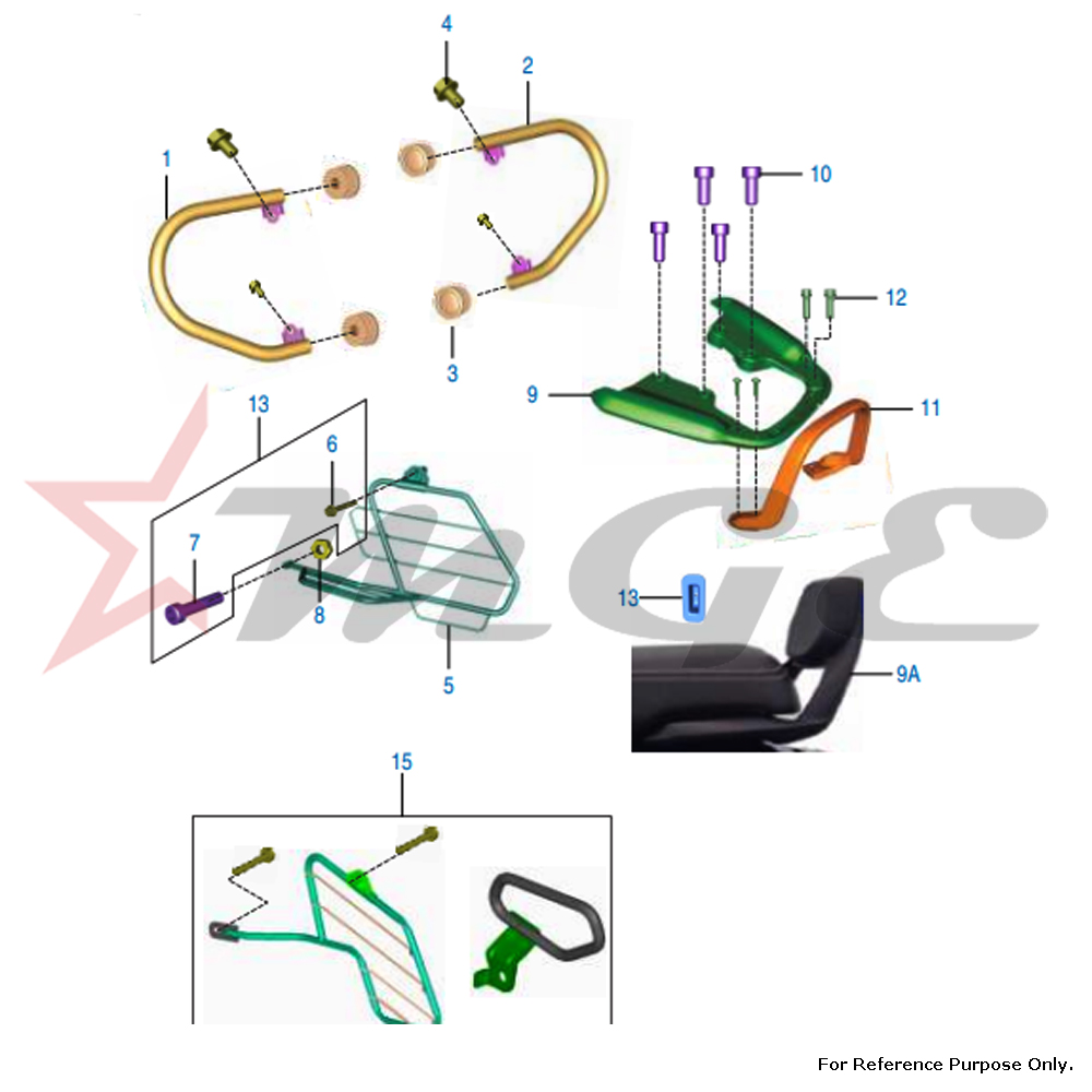 Leg Guards, Saree Guard & Grab Handle Spare Parts For Bajaj V15 BSIV & V12