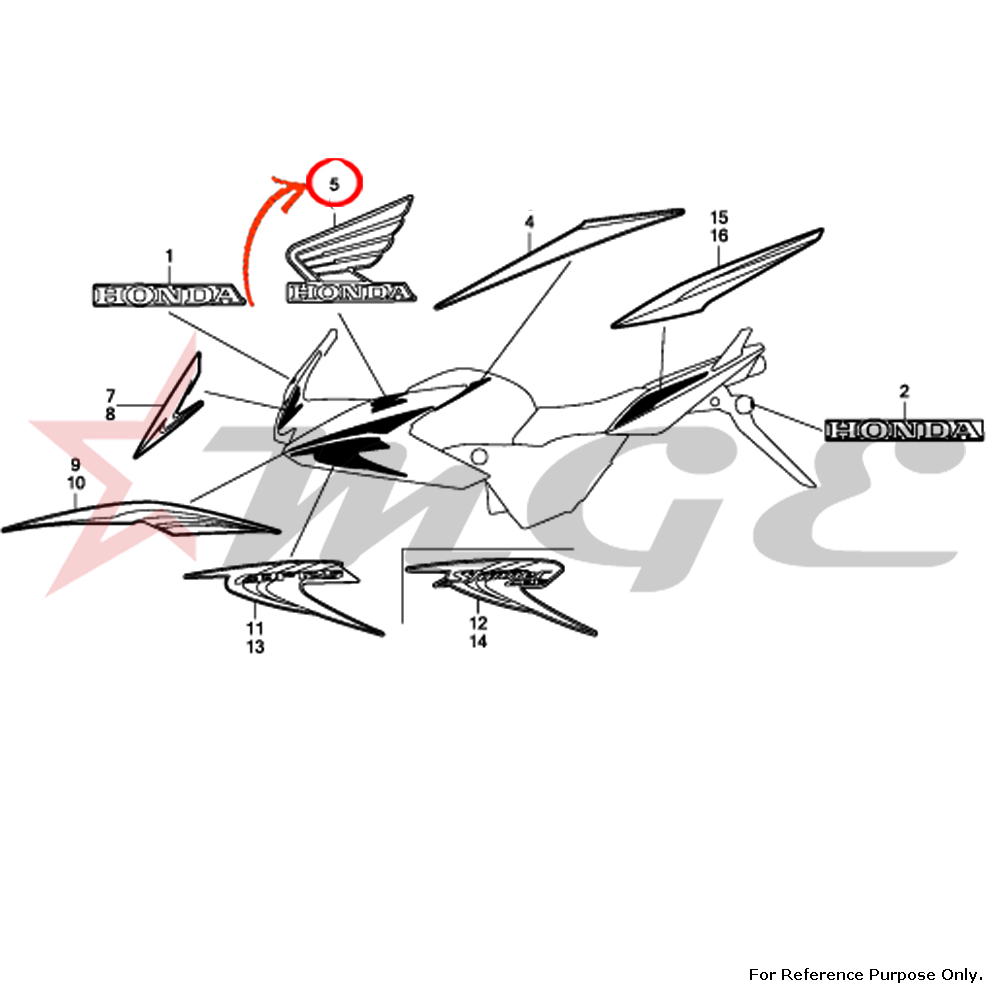 Mark, R. Wing For Honda CBF125 - Reference Part Number -  #86201-KWF-N10ZA, #86201-KWF-N10ZB, #86201-KWF-N10ZC, #86201-KWF-N10ZD