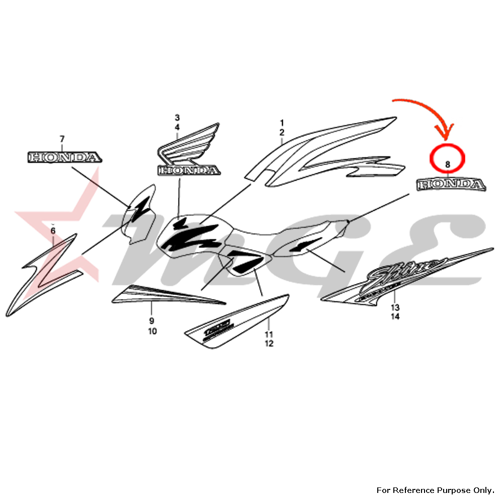 Mark, Rr. Center Cowl For Honda CBF125 - Reference Part Number - #77228-KTE-950ZA