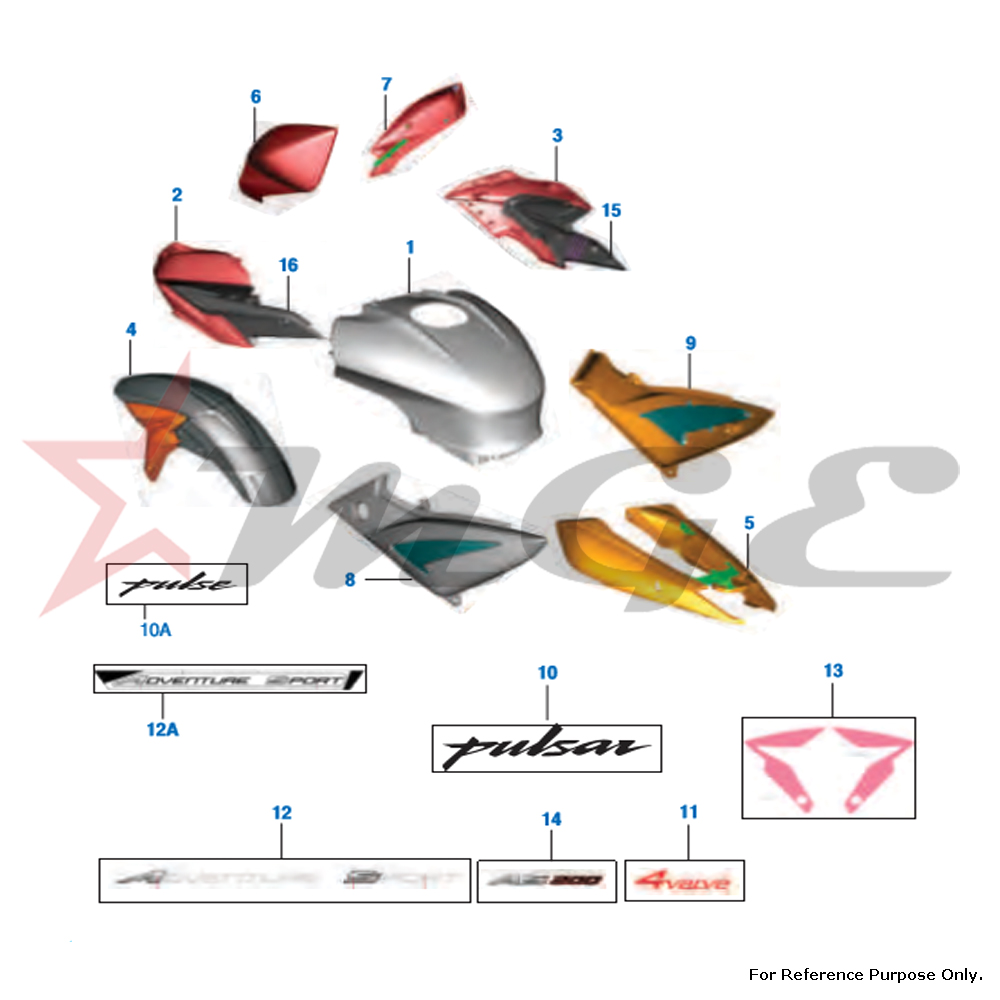 Painted Parts and Decals A Spare Parts For Bajaj Pulsar NS200 / AS200 BS IV