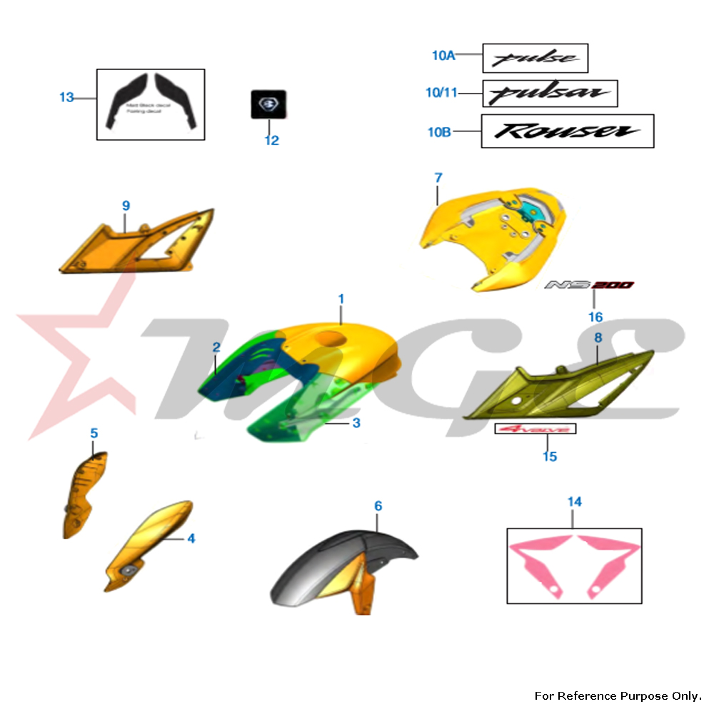 Painted Parts and Decals (Old- up tp Oct. 2013_Refer Circular IB-82) Spare Parts For Bajaj Pulsar NS200 / AS200 BS IV