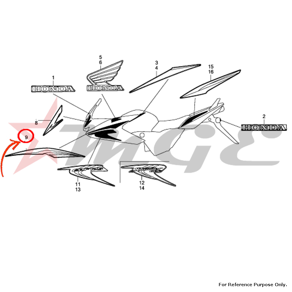 Stripe A, R. Fr. Cowl For Honda CBF125 - Reference Part Number -  #86643-KWF-N10ZA, #86643-KWF-N10ZB, #86643-KWF-N10ZC, #86643-KWF-N10ZD