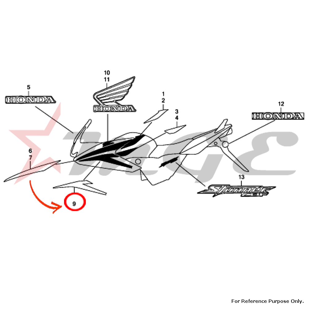 Stripe B, L. Fr. Cowl For Honda CBF125 - Reference Part Number -  #64209-KWF-930ZA, #64209-KWF-930ZB, #64209-KWF-930ZC, #64209-KWF-930ZD