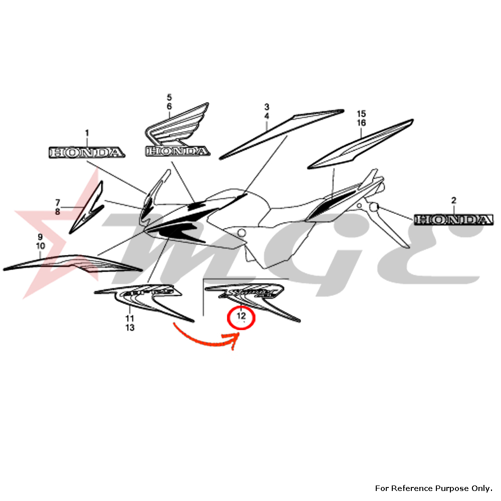 Stripe B, R. Fr. Cowl For Honda CBF125 - Reference Part Number -  #86645-KWF-N10ZA, #86645-KWF-N10ZB, #86645-KWF-N10ZC, #86645-KWF-N10ZD