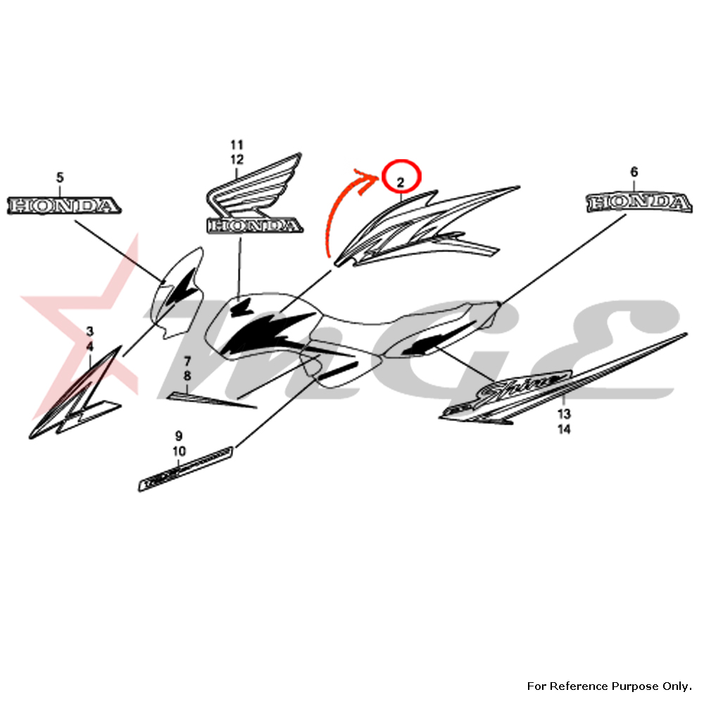 Stripe, L. Fuel Tank For Honda CBF125 - Reference Part Number -  #17508-KTE-A00ZA, #17508-KTE-A00ZB, #17508-KTE-A00ZC, #17508-KTE-A00ZD, #17508-KTE-A00ZE