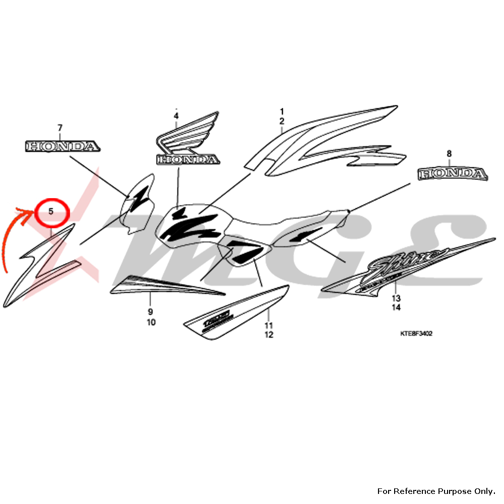 Stripe, R. Fr. Visor For Honda CBF125 - Reference Part Number - #61306-KTE-850ZA, #61306-KTE-850ZB, #61306-KTE-850ZC, #61306-KTE-850ZD, #61306-KTE-850ZE