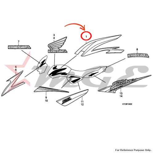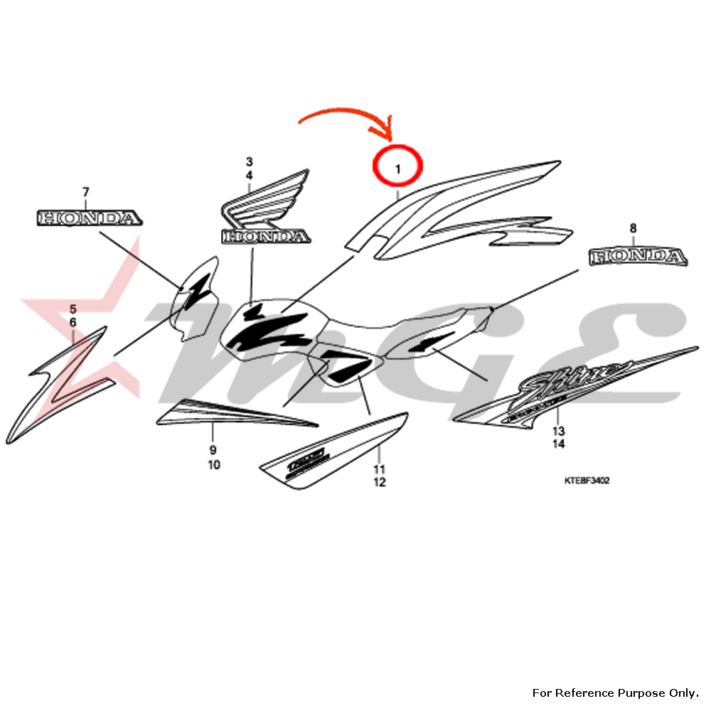 Stripe, R. Fuel Tank For Honda CBF125 - Reference Part Number - #17507-KTE-850ZA, #17507-KTE-850ZB, #17507-KTE-850ZC, #17507-KTE-850ZD, #17507-KTE-850ZE
